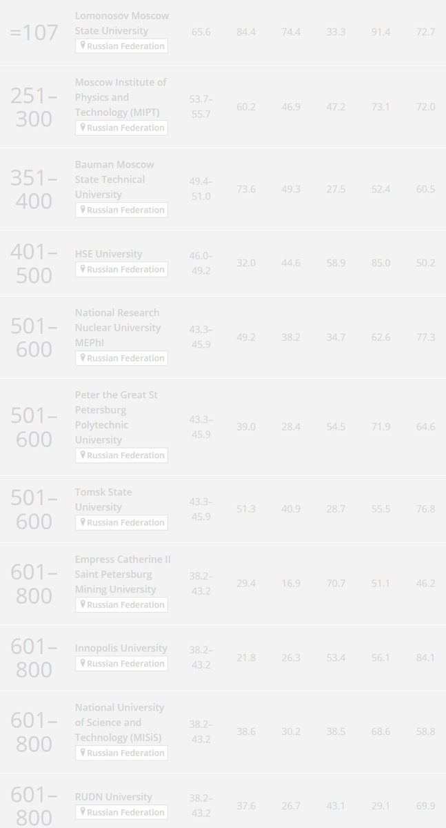 Что касается наших? Лучший из наших – МГУ – вылетел из первой сотни, опустившись на 107 место.