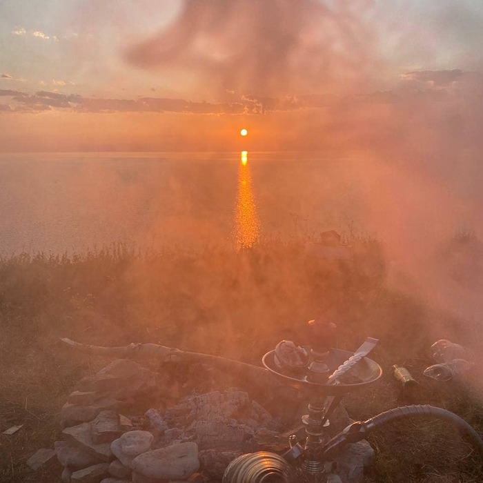 Яркий, таинственный и романтичный закат на оз. Ильмень. Побережье в деревне Устрека.