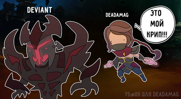 Заявка: Персонажа templar assasin (с ником сверху deadamag), кричащим shadow fiend'y (над головой ник deviant) "это мой крип!"?