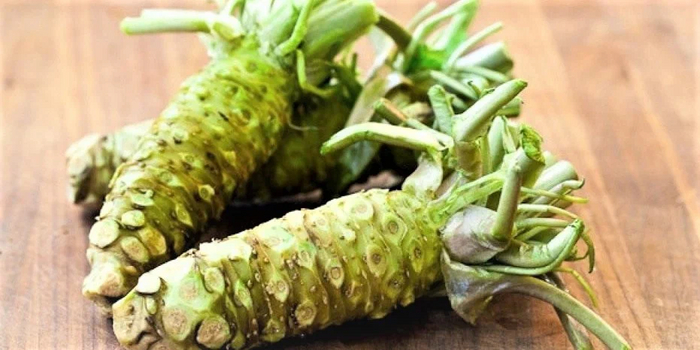 Цельные корневища васаби. Как видим, их подкрашивать не надо, без того зелёные.