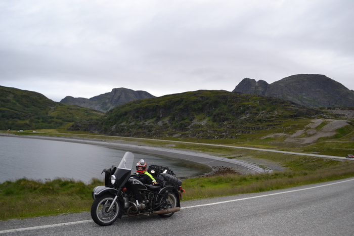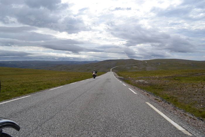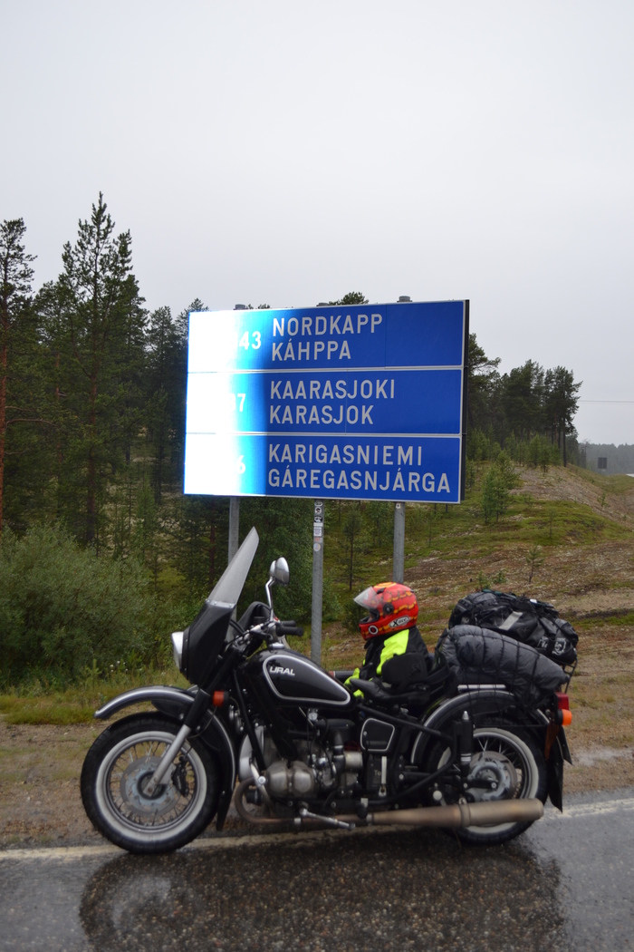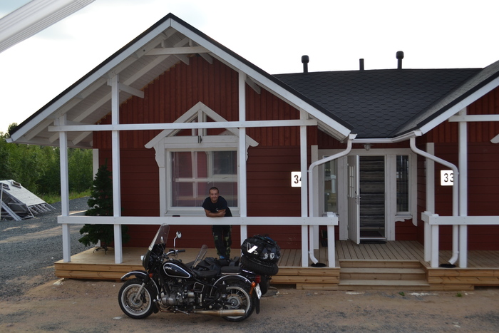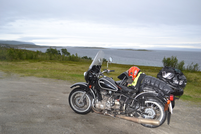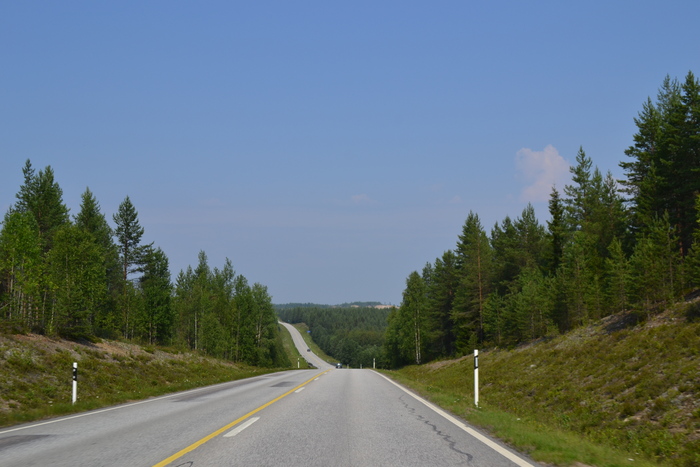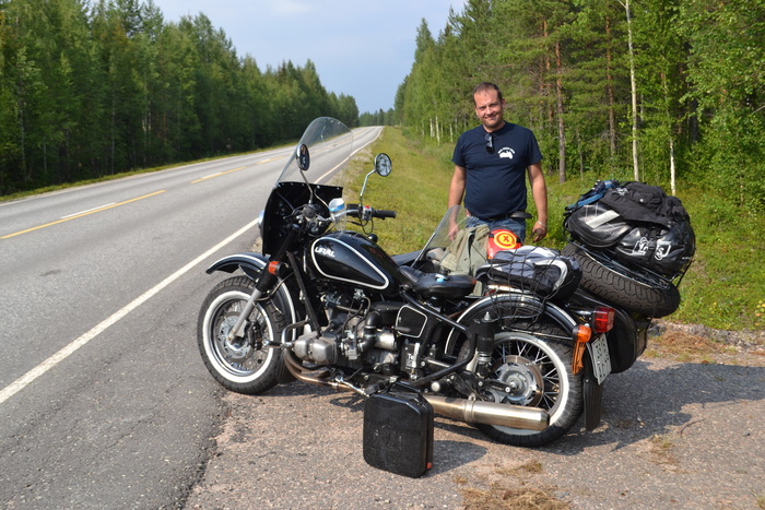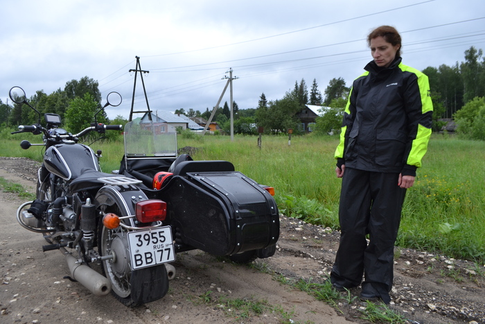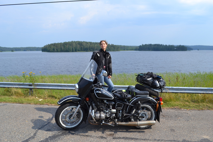 Выезжаем из Таллинна на восток – окраины застроены панельными многоэтажками, мы могли бы быть где угодно в бывшем СССР. Ещё вчера утром я заметил, что мотоциклету как-то странно побалтывает на дороге – осматриваю всю ходовую и крепёж, подкачиваю колесо, но не помогает. В середине дня резко спускает заднее колесо: оказывается, оно просто протёрлось до дырки ровно посередине. Задний брызговик висит очень низко и самый центр протектора совсем не видно, боковая же часть выглядит вполне прилично. Целый час трачу на попытки поставить мотоциклету на центральную подножку: со спущенным колесом Ретра почти лежит на глушителях, очень тяжело и неудобно. В итоге Аня изящным жестом останавливает грузовик, дальнобойщик помогает поднять мотоциклету. Теперь уже я быстро меняю колесо, и мы продолжаем путь.