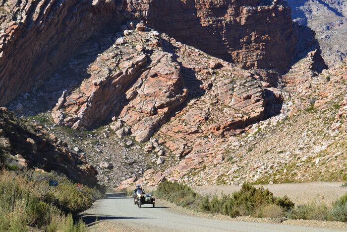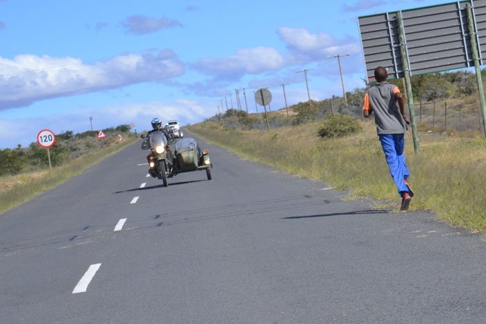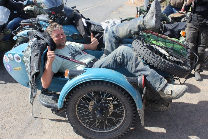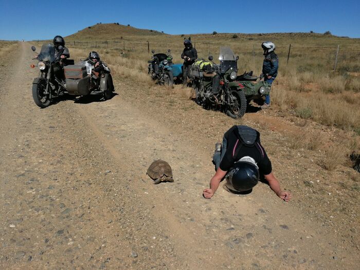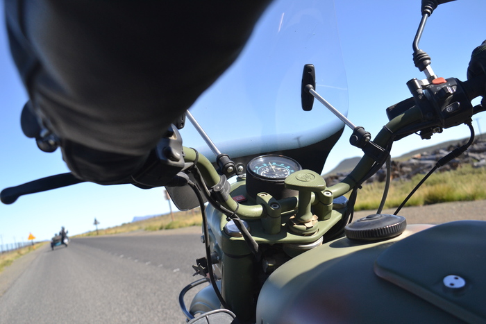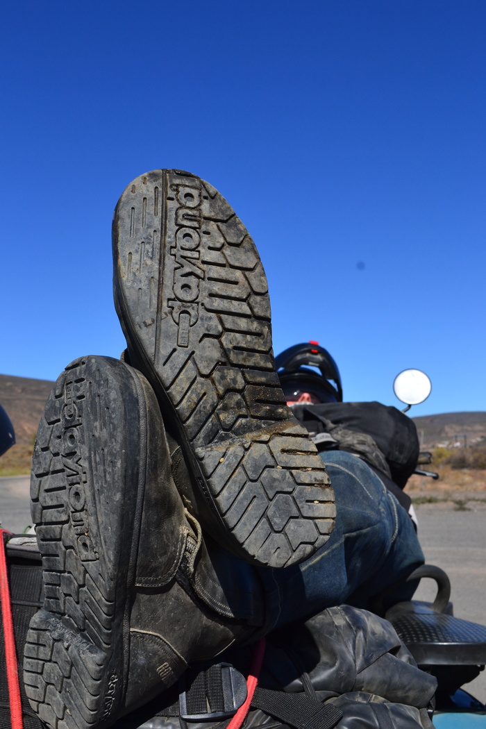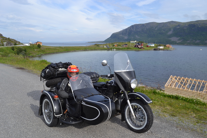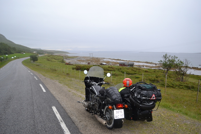 Выезжаем из Таллинна на восток – окраины застроены панельными многоэтажками, мы могли бы быть где угодно в бывшем СССР. Ещё вчера утром я заметил, что мотоциклету как-то странно побалтывает на дороге – осматриваю всю ходовую и крепёж, подкачиваю колесо, но не помогает. В середине дня резко спускает заднее колесо: оказывается, оно просто протёрлось до дырки ровно посередине. Задний брызговик висит очень низко и самый центр протектора совсем не видно, боковая же часть выглядит вполне прилично. Целый час трачу на попытки поставить мотоциклету на центральную подножку: со спущенным колесом Ретра почти лежит на глушителях, очень тяжело и неудобно. В итоге Аня изящным жестом останавливает грузовик, дальнобойщик помогает поднять мотоциклету. Теперь уже я быстро меняю колесо, и мы продолжаем путь.