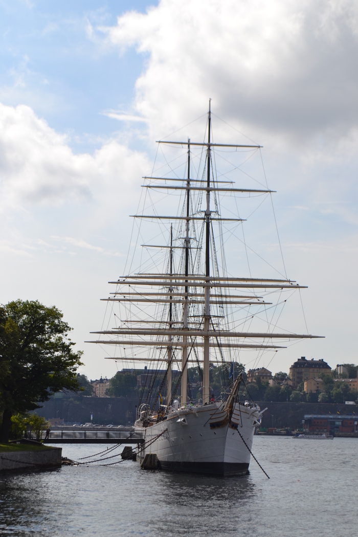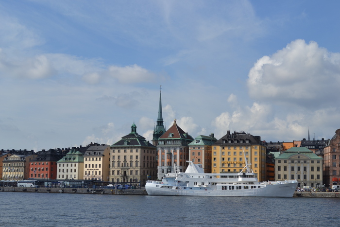 Утром приезжаем в порт Стокгольма и грузим нашу мотоциклету на паром в Таллинн. В судне 9 этажей, магазины, рестораны, казино. Как только выходим из порта – начинается ливень. Параллельным курсом, с головой зарываясь в волны и поднимая стены брызг, нас недолго провожают несколько открытых штурмовых катеров береговой охраны со спецназовцами на борту.