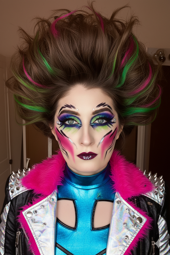 Ну да, я их просила творить всякую дичь :D Конкретных промптов практически не писала, писала "сделай дикую прическу" или "сделай очень оригинальный макияж" и всё в таком роде. Ну вот они и постарались :DD