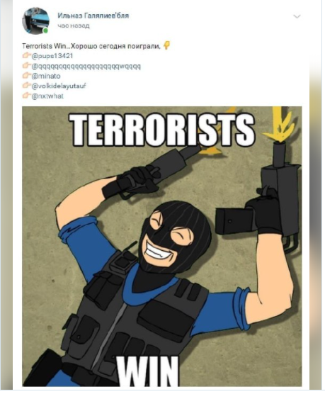 Вчера этот деятель развлекался тем, что, имитируя страницу казанского стрелка, хайповали на трагедии и всячески оправдывали расстрел школьников. Как выражается сам упырь «поднимали актив своих страниц».
