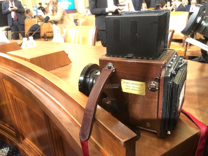 Ветеран фотожурналистики пришёл на слушания по импичменту Трампа с широкоформатной камерой
