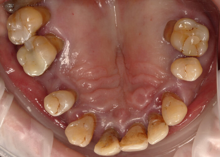 Практически во всех областях рта атрофия идет снаружи, соответственно, добавлять кость будем снаружи, а в области задних отделов верхней челюсти атрофия идет ещё и со стороны гайморовой пазухи, так как на её стенки давит воздух. Всё это умножается на мягкую кость, которая у нас традиционно располагается в этой области, и время пока пациент у нас не соизволит заняться своими зубами, и получаем истончение, в результате чего имплантат туда установить невозможно без наращивания.