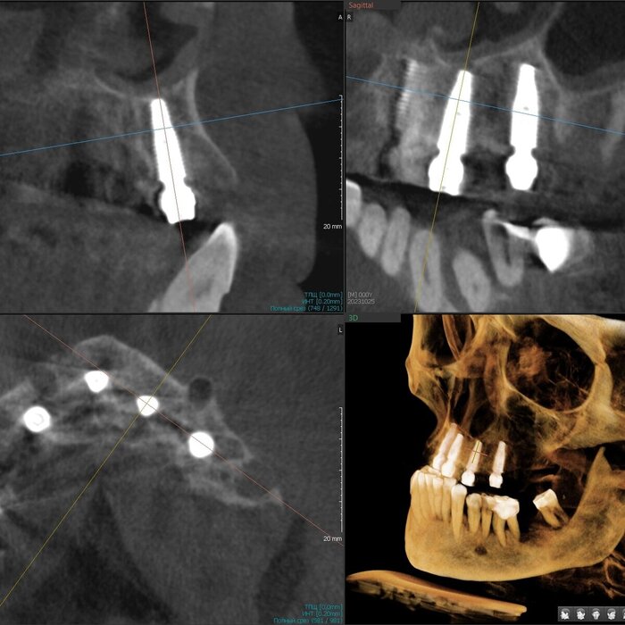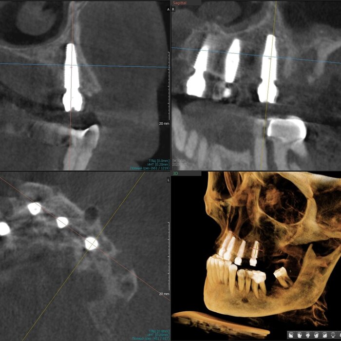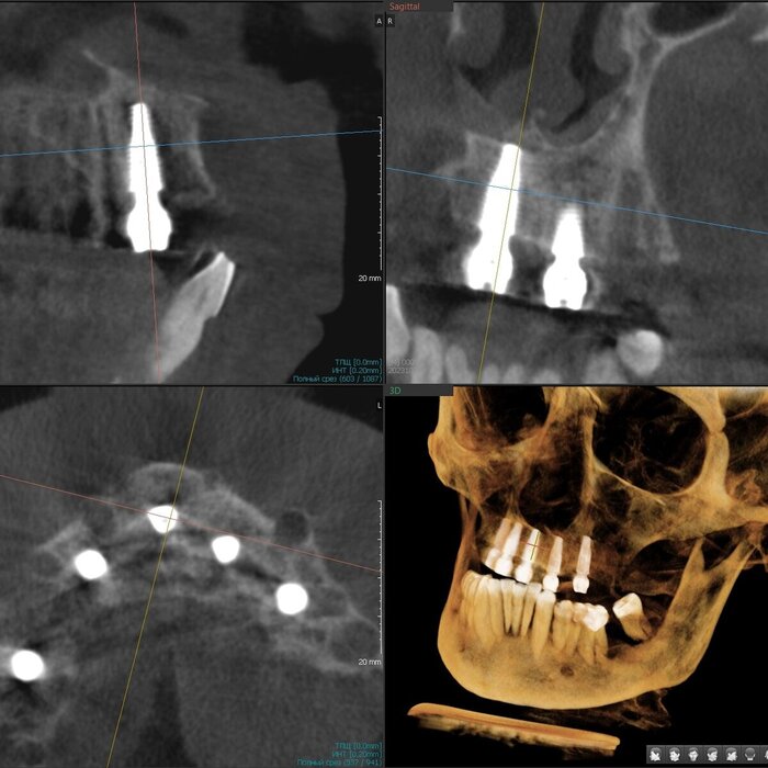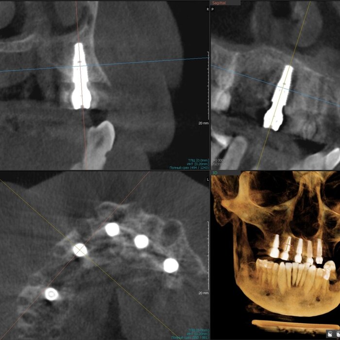 Поэтому кастрированный снимок, где видна только область установки будущего имплантата не прокатит. Тем более в центрах КТ такой снимок стоит дороже классической КТ рублей на 200. И стоит ли экономить?