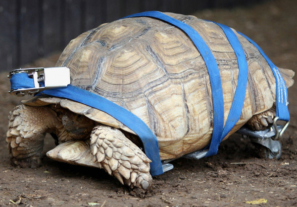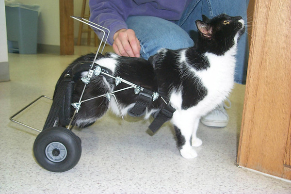 Бонусом очень маленькое видео, на котором кот через 10 минут после примерки своих новых лапозаменителей. (Громкий звук.)