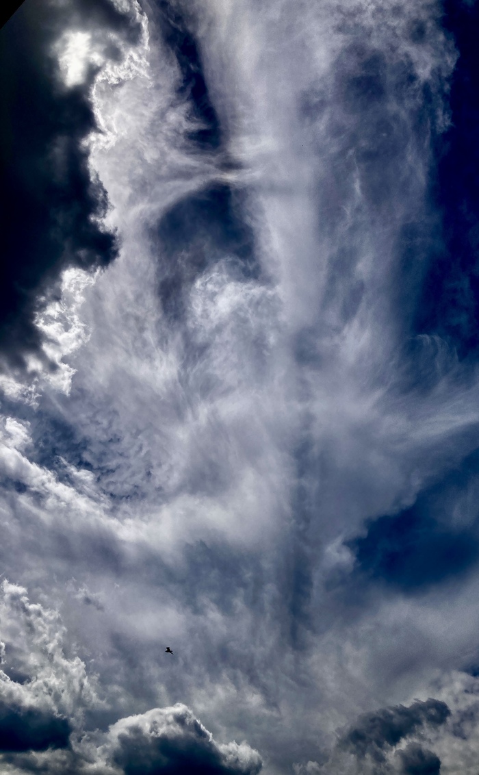 Что создало этот гигантский X в облаках? Это была тень инверсионных следов, подсвеченных снизу. Когда самолеты летают, влажные выхлопы двигателей могут образовывать капли воды, которые могут замерзнуть в холодных верхних слоях атмосферы Земли .