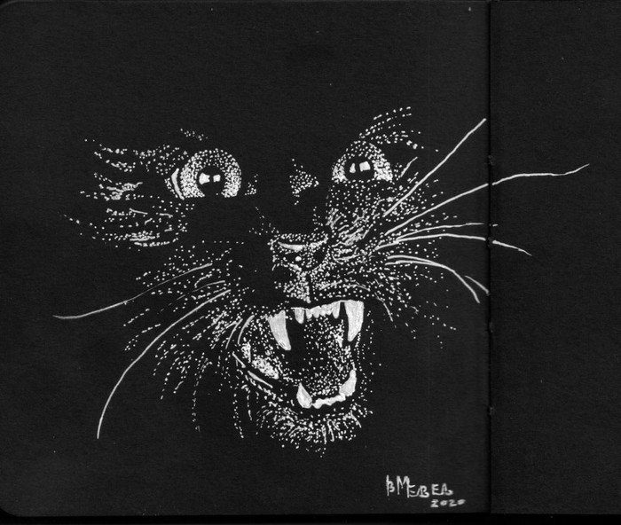 Ох ты, как оказалось непросто, рисовать все навыворот, в инверсии, белым по черному. Тем более в технике стипплинг. Но процесс - классный!