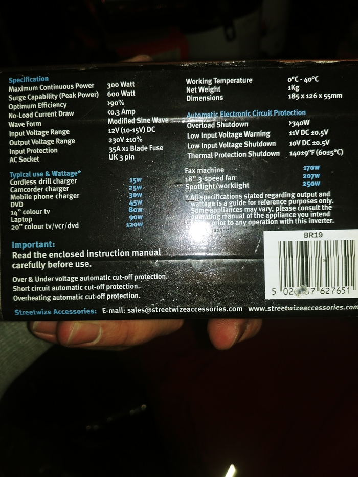 Заказал, подождал и пошел в магазин за заказом. Сотрудник магазина вынес мой заказ: Заказанный мной инвертор (который Орион аж на 900 ватт) имел вид уже бывшего в употреблении товара, был весь поцарапанный и не имел упаковки. Сотрудник магазина, по моему моему мнению, картинно посетовав на непрезентабельный вид товара предложил мне другой, по его словам дешевле на 1000 р. и гораздо качественнее, а именно Wester MSW600 (не реклама). Спросил его насчет работы с ноутбуком, на что он мне ответил: Все будет работать, берите. Сразу скажу что я сам дурак, не проверил, спешил, так как на следующее утро уезжал в отпуск и дел было еще куча. Положил в машину и уехал.