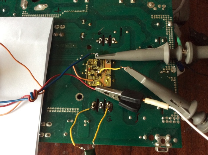 4.В качестве источника питания был использован внешний безтранформаторный преобразователь напряжения(50Гц) ≈220В/=12В/0,2А, который подключался непосредственно к конденсаторам С21,С22 блока питания СА. Чтобы не нагружать стабилитрон D36, его надо выпаять.( D36,R55,R37 можно использовать в других целях).