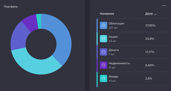 Промежуточная цель, к которой я стремлюсь – это 1 000 000 рублей дивидендами и купонами в год с учетом инфляции. По данным сервиса учета инвестиций, цель будет достигнута в 2034 году.