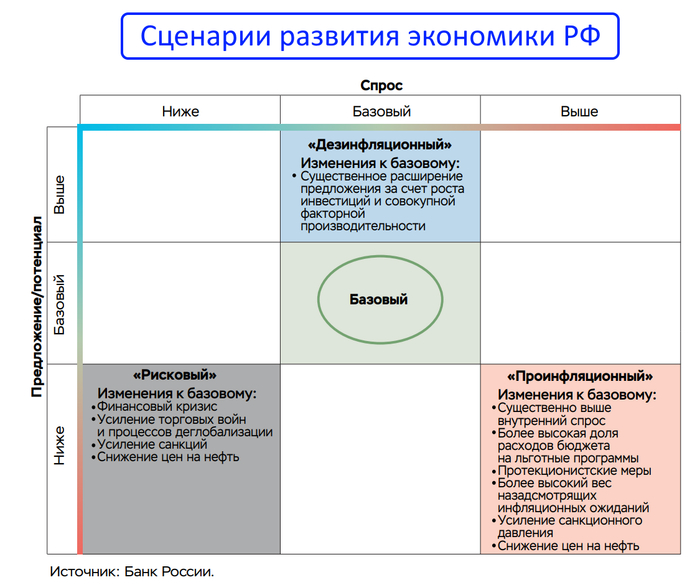 ЦБ считает этот вариант наиболее реалистичным. Экономика будет двигаться по нему, если не случится резких внешних или внутренних потрясений.