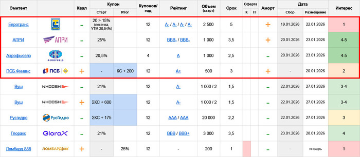 Более длинные выпуски рассматривать, на мой взгляд, не имеет смысла, так как к моменту их погашения значения ключевой ставки будут ближе к 10-12%, а значит, время для инструментов долгового рынка закончится, так как дивидендная доходность отдельных акций станет выше, чем на рынке долга.
