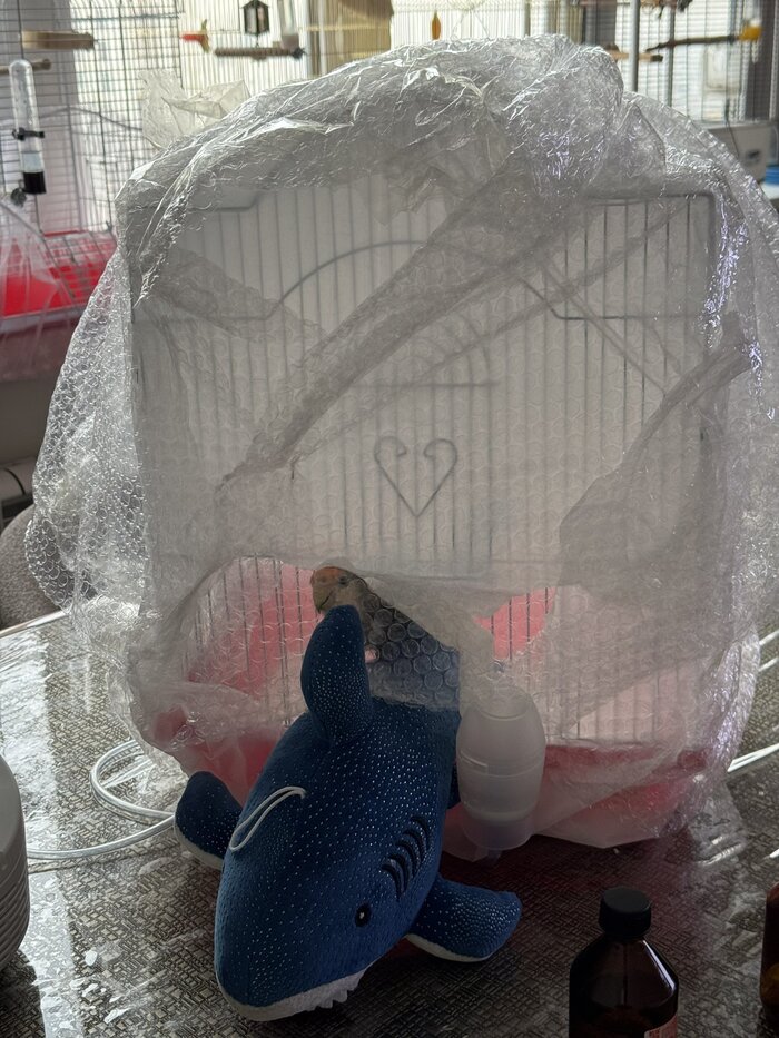 Всем привет. Я нашла у себя хороший контейнер с крышкой, сделала держатель для небулайзера внутри плюс дырки по всей крышке. Теперь я могу сделать кучу делать в то время, как коты лечатся. Это супер мега удобно. Перед тем, как посадить их туда, я даю им вкусняшку. На выходе тоже. Поэтому они ведут себя очень спокойно. Плюс, на полу бокса лежит пеленка