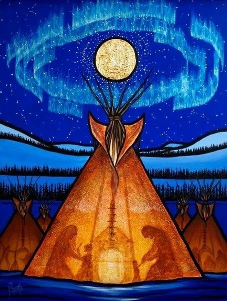 Росомаха так разозлился, что начал рвать землю, хватая ее куски и бросая их в небо. Некоторые из этих кусочков просто вернулись обратно...и стали горами, холмами или островами. А другие остались в небе, став планетами и звездами.