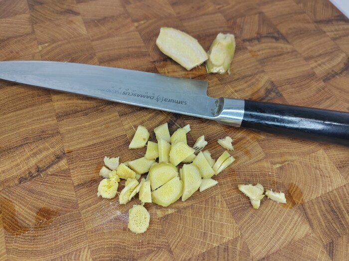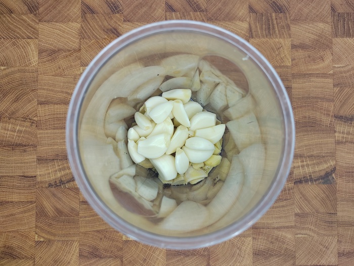 7. Дальше имбирно-чесночное пюре. С ним все просто: режем имбирь