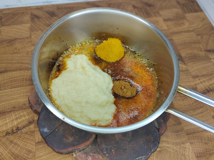 Чесночно-имбирное пюре - 1 столовая ложка (я заменил 1 чайной ложкой сушёного чеснока и 1 чайной ложкой сушёного имбиря);