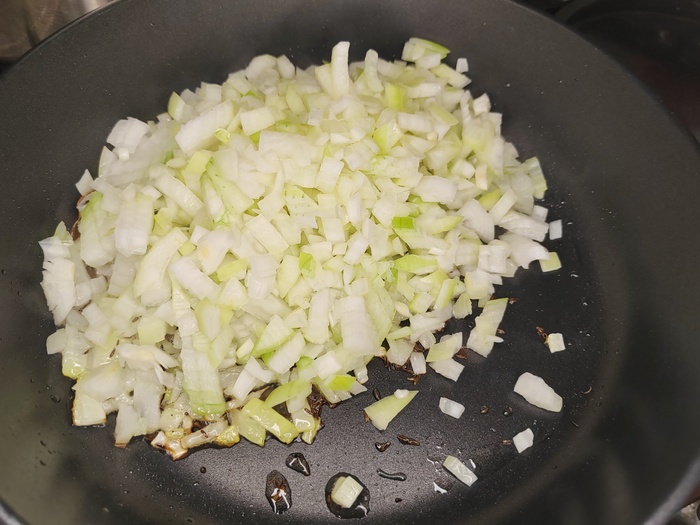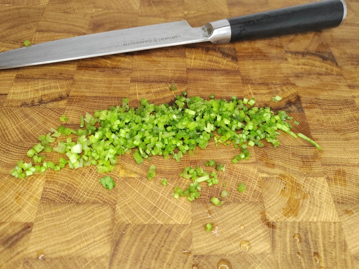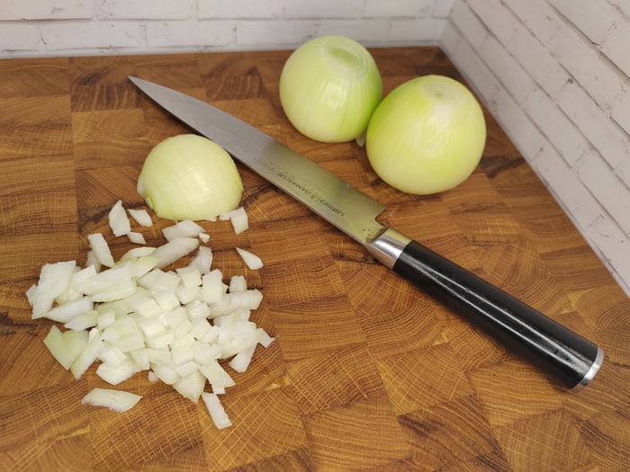 23. Нарезаем лук. В целом, без разницы как. Я вот нарезал мелко. Просто так.
