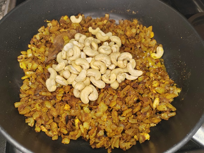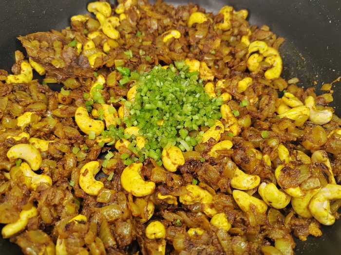 29. Всё перемешаем, немного прогреем (может понадобиться добавить немного масла) и добавим кешью.