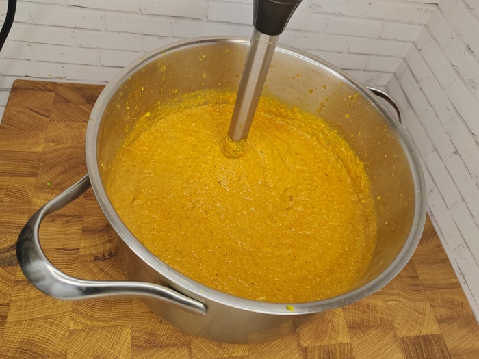 33. Перекладываем содержимое сотейника в кастрюлю или чашу стационарного блендера (лучше дать месиву немного остыть).