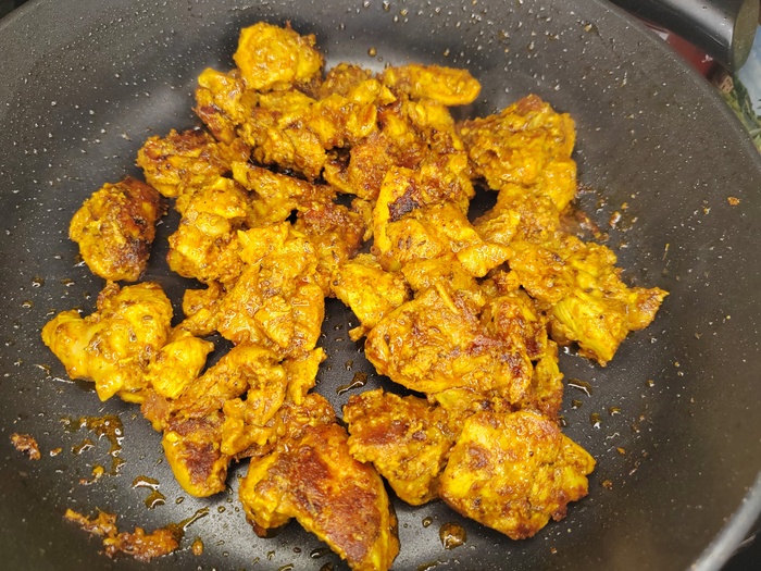 Но штука это вкусная, на самом деле, не особо сложная, особенно, если не будете запариваться с самостоятельной сборкой масалы/карри, готовящаяся не то чтобы быстро, но и не сверхдолго.