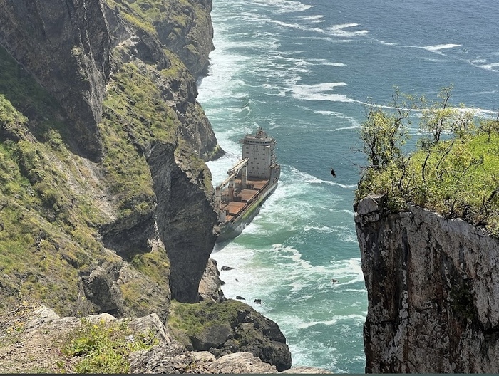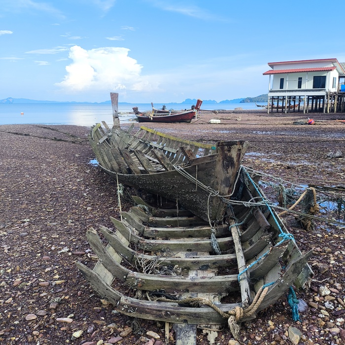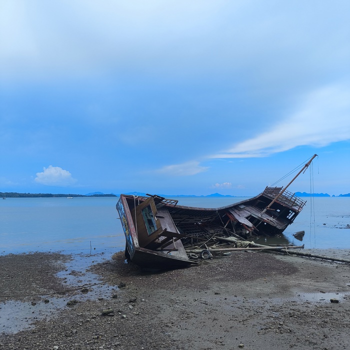 Больше всего моё внимание захватил разрушенный корабль на мели, вероятно, прогулочный. Во время отлива его устройство видно лучше всего.