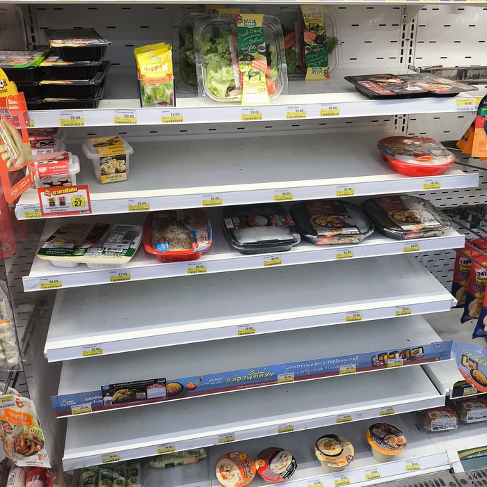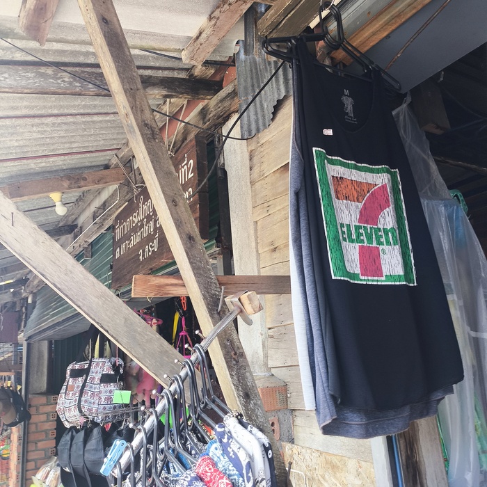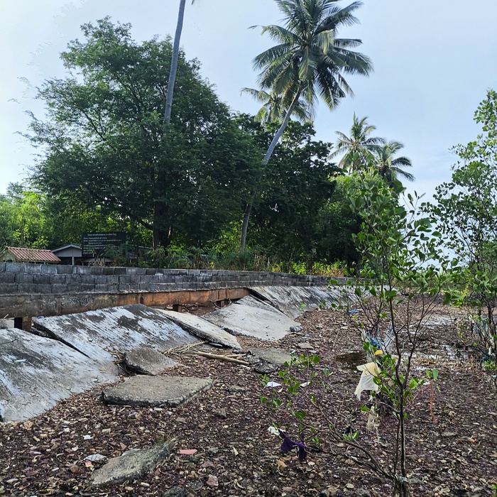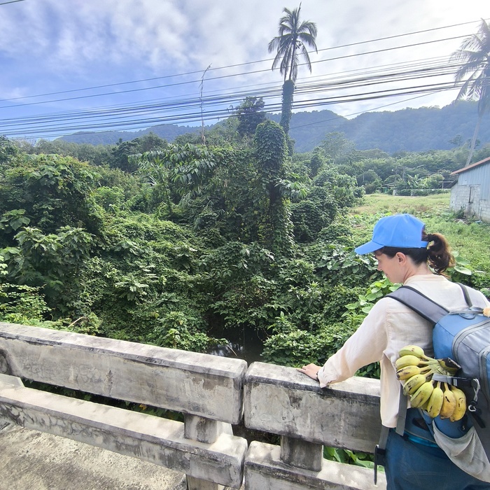 Заглянули в 7-11, чтобы прикупить готовой еды на ужин и стало ясно, что не одни мы такие хитрые. Полки супермаркета оказались пусты. Цена на еду в старом городе очень велика и обычные туристы, судя по всему, тоже едят в 7-11. Мы все же нашли в холодильнике пару порций риса с омлетом и креветками, зарядились бананами на небольшом рыночке и отправились искать местечко, что заранее присмотрели на карте. До него всего 1.5 километра отсюда - там ручей впадает в море и у нас будет пресная вода, чтобы умыться. Если ручей не пересох, конечно.