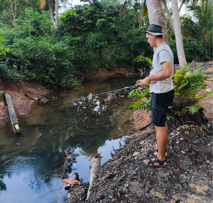 Как только быт был налажен, я направился исследовать местную речушку на предмет наличия рыбы. В море тут особо не порыбачить, нужна глубина побольше, а в этом ручье я как раз присмотрел какую-то бездонную яму, где укрывается множество разных рыбешек.