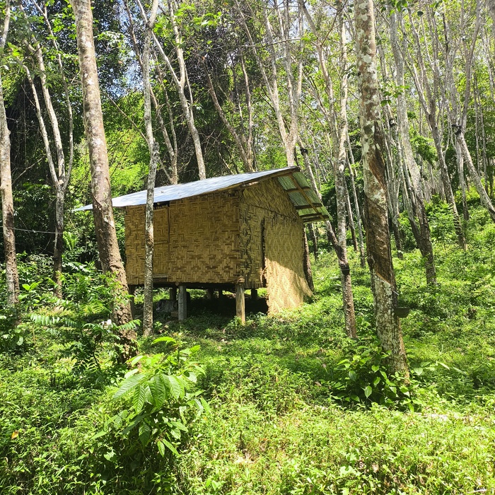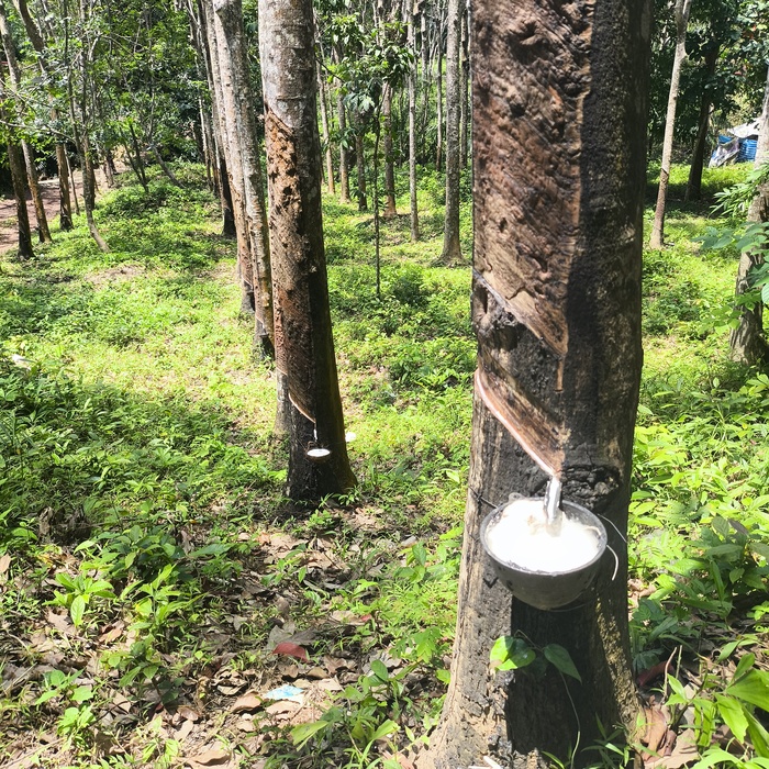 Леса вокруг заняты каучуковыми плантациями и будущая резина в буквальном смысле течет рекой в маленькие ёмкости из скорлупы кокоса.