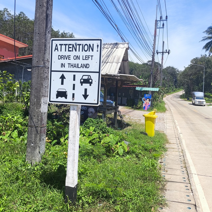 Интересно, что на острове очень много разных указателей, мы даже не всегда понимали их значение. Часто напоминают, что движение в Таиланде левостороннее. Вероятно из-за того, что на юге страны много выходцев из Малайзии и туристов.