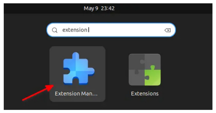2. Затем нажмите клавишу Super (логотип Windows) на клавиатуре, чтобы открыть обзор действий , найдите и откройте Менеджер расширений (Extension Manager).