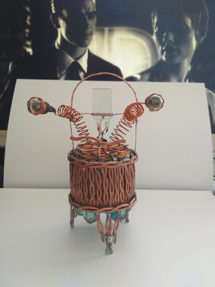 Этот индикатор устанавливался в экспериментальный робот-автомобиль, и оператор, контролирующий процесс обработки дорожной информации и страхующий систему от неверных реакций, мог по нему определять, увидел ли видикон в передней части робота сигнал светофора, и корректно ли распознал его цвет. Отклонение стрелки соответствовало степени достоверности распознавания.