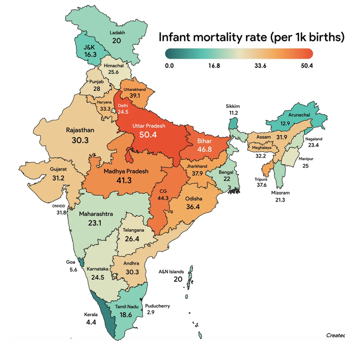 Здравоохранение: Бесплатные клиники, 77.8 лет жизни (vs. 70.4 по Индии). Младенческая смертность 6/1000 (vs. 27).