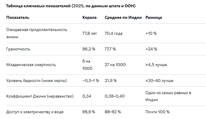 Керала — аномалия: коммунисты правят штатом с 1957 года через демократические выборы. В 2025 году Керала стала первым штатом Индии без крайней бедности , с лучшими показателями здоровья и образования в стране. Успех — в адаптации: реформы через парламент, конкуренция с правыми и внешние факторы.