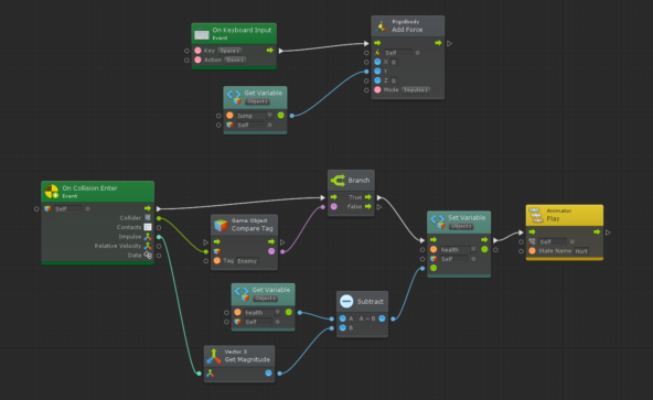 При этом если не хочешь писать код руками в C#, то в Unity есть другой язык программирования. Он называется Bolt. Если коротко, то такие визуальные языки программирования состоят из блоков, которые ты вызываешь, подаёшь нужные значения и устанавливаешь значения. Но вот в чём нюанс - этой системой в Unity практически не пользуются. Все привыкли писать код «по-старинке» на C#. И это нормально.