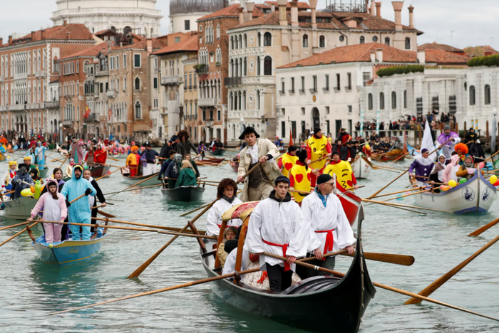 В Венеции прошел маскарадный заплыв по Гранд-каналу.