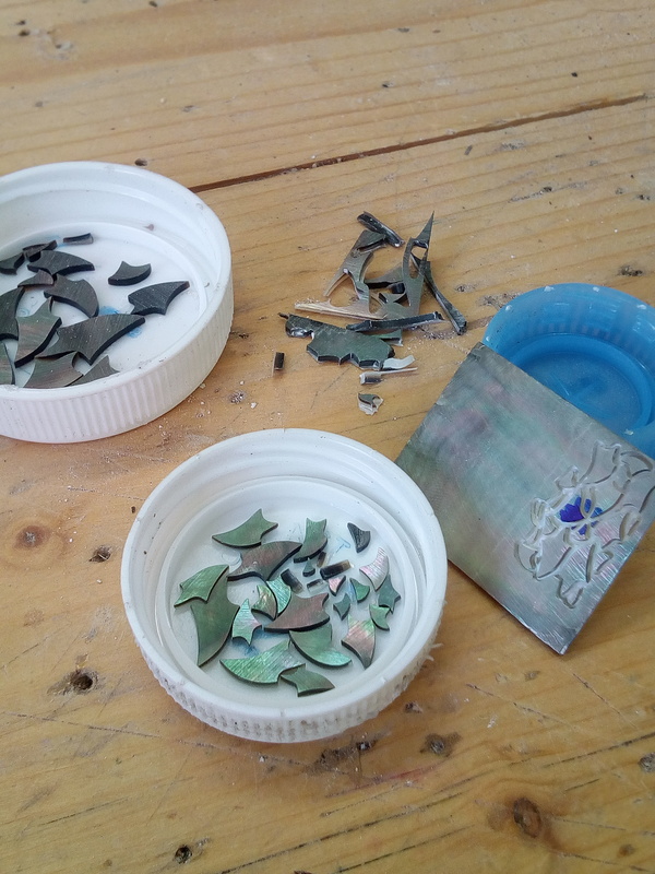 выколупываем перломутр (нужно терпение...много...желательно, я как бывший резчик по дереву у меня его хоть отбавляй :) )