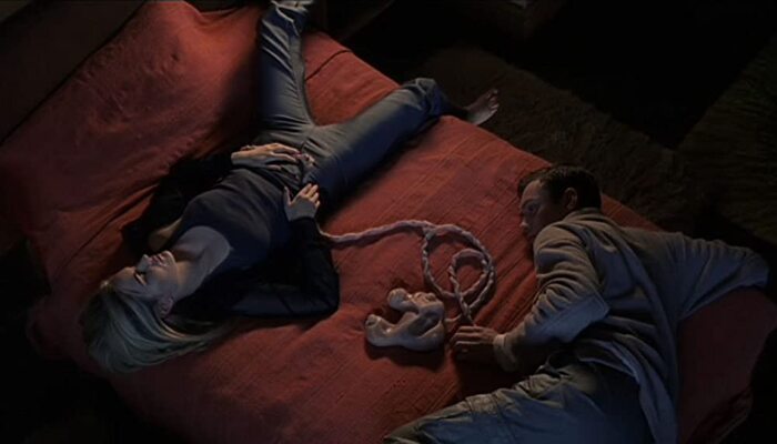 Выше тот самый кадр из фильма, который стал шаблоном к мему «Когда песня становится крутой на такой-то минуте». Это на 28:00 в хронометраже фильма. А ещё я никогда не задавался вопросом, зачем в этот момент на персонаже надет дождевик в помещении. А всё очень просто — чтобы не запачкать свой костюм об биологическое содержимое.