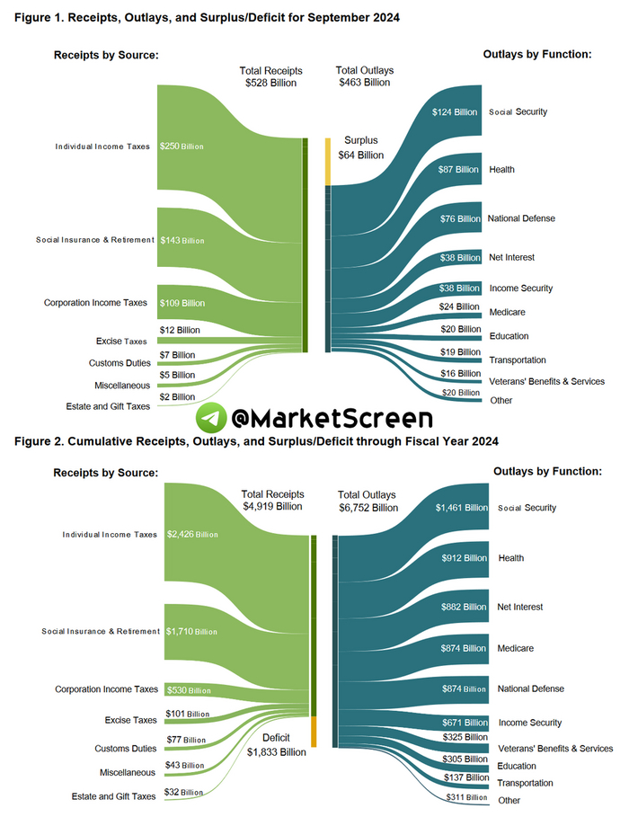 Итоги великолепны. Дефицит Федерального бюджета составил 1,833 трлн $. Ну да кого это волнует, если твоя валюта является мировой резервной? Выпустил очередные трежеря, кинул на свободный независимый рынок и получил финансирование дефицита.