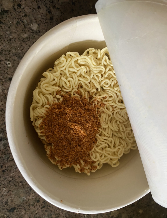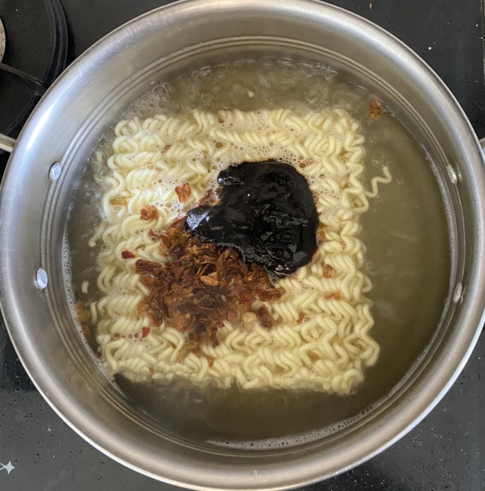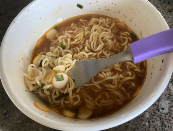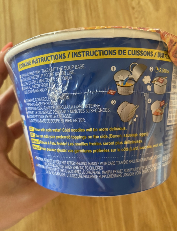 Производитель рекомендует залить лапшу теплой водой и отправить на 4 минуты в микроволновку.