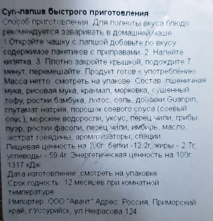 Содержимое не вызывает восторгов, лапши много - да. 95% от всей коробки это она, плюс маленький пакетик с суповой основой. Карма у меня чистая, поэтому рано расстраиваться.