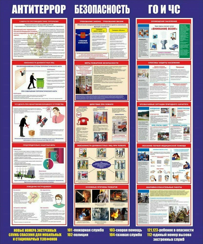 Стенд Антитеррор, Безопасность, ГО и ЧС размер 1000 х 1200 мм. Ссылка на него