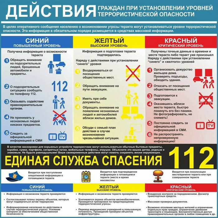 Стенд Действия граждан при установлении уровней террористической опасности размер 1000 х 1000 мм. пластик 3 мм. Ссылка на стенд