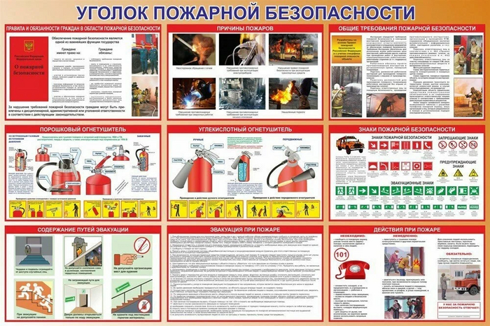Стенд Уголок пожарной безопасности размер 1200 х 800 мм. пластик 3 мм. Ссылка
