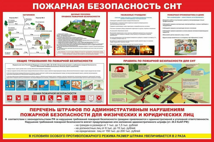 Стенд Пожарная безопасность СНТ размер 1200 х 1000 мм. пластик 3 мм. Ссылка на большой стенд