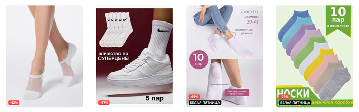 Результат поисковой выдачи по запросу "носки женские белые". Здесь тоже наше внимание привлекли красивые ножки в белых носочках на белом фоне.