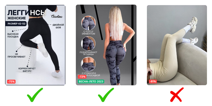 Что делать? Пробовать разные дизайны и наполнение карточек товаров и улучшать, пока не получим нужный результат (конечно, в сочетании с инструментами продвижения). Желательно иметь несколько вариантов дизайна карточки на один и тот же товар, чтобы оценить и сравнить конверсию. При работе с селлером учитываем пожелания, но в приоритет ставим интересы конечного покупателя.